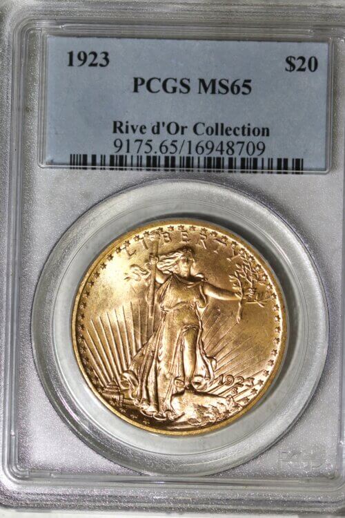 1923 $20 SAINT GUADENS PCGS MS65 Rve d’Or Collection