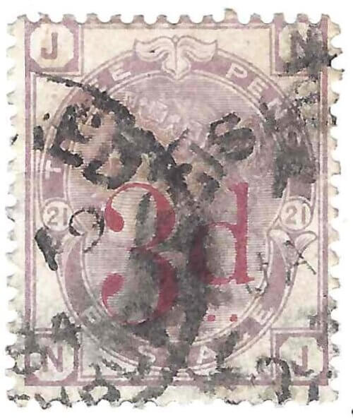GREAT BRITIAN 1883 3p on 3p Violet (SCOTT 94) Plate 21
