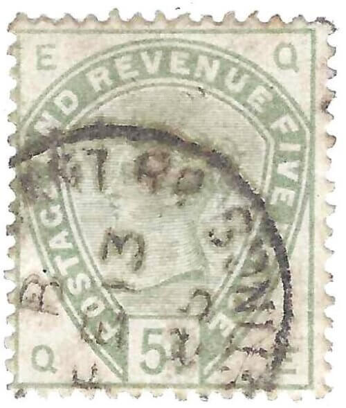 GREAT BRITIAN 1883-84 5p Green (SCOTT 104)