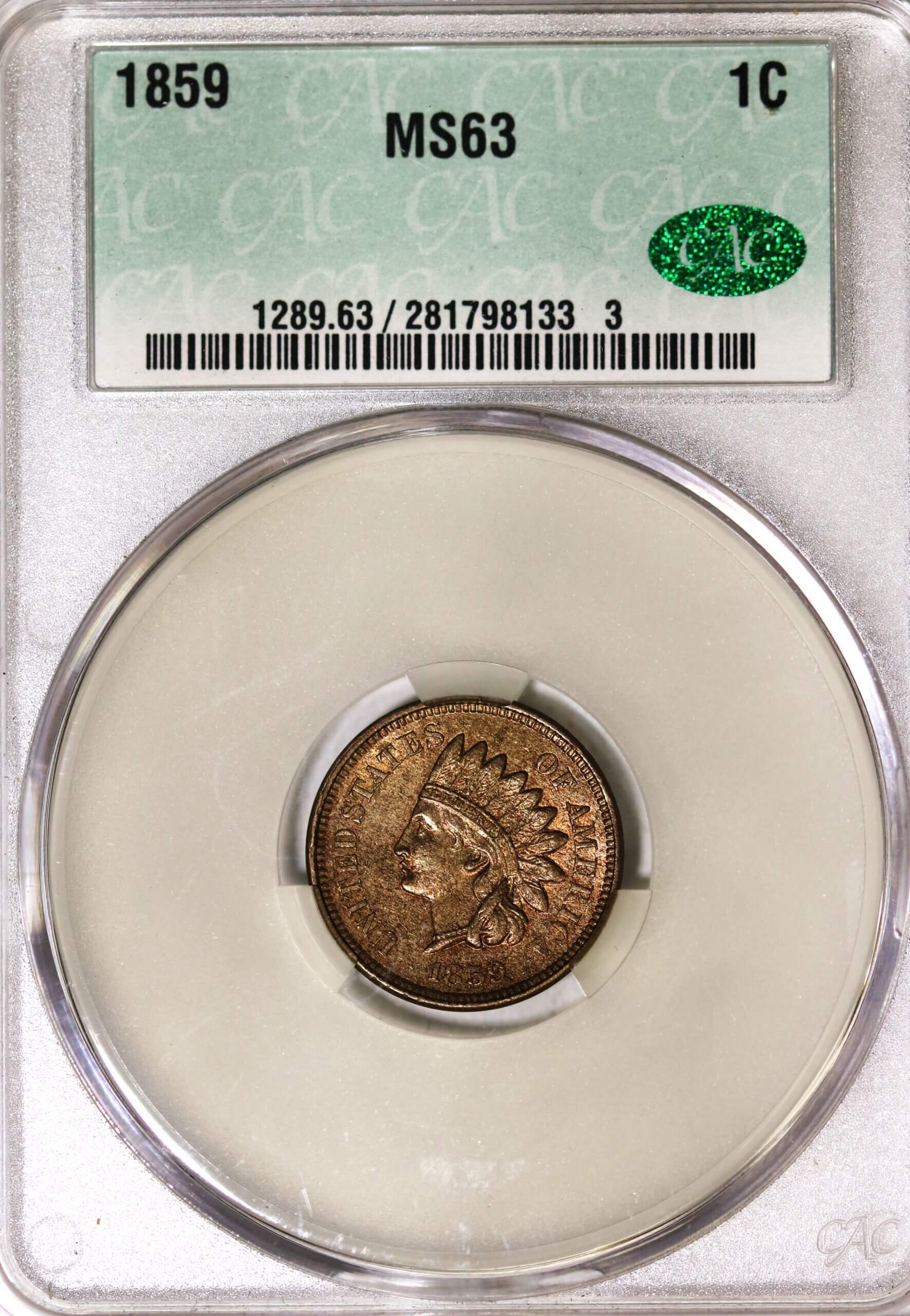 1859 1C MS63 CACG quantity