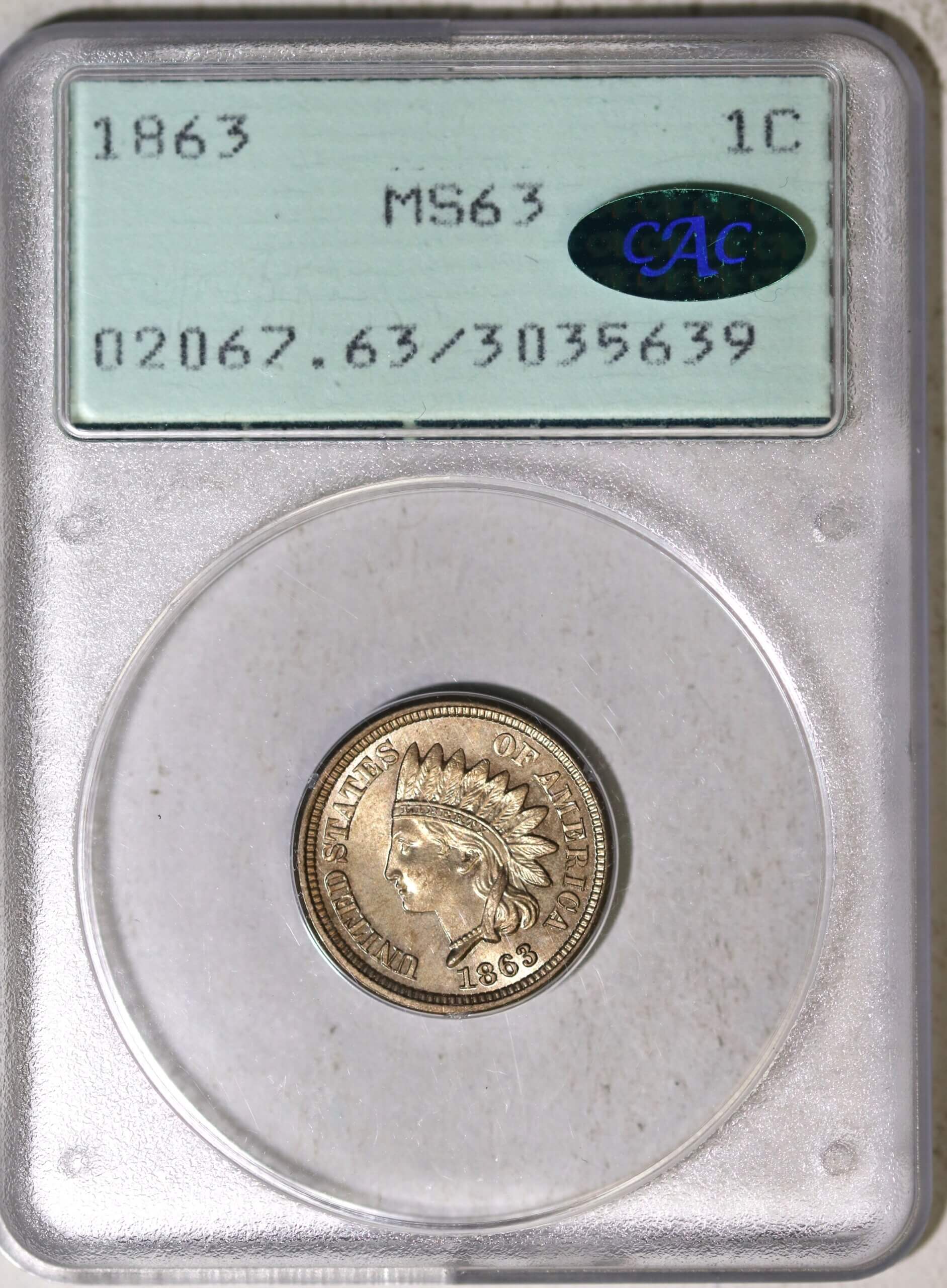1863 1C MS63 PCGS (CAC) 1ST GENERATION HOLDER