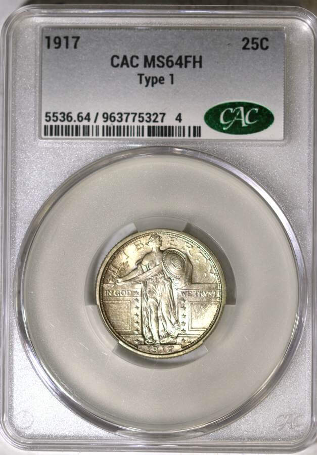 1917 TYPE-1 STANDING LIBERTY QUARTER MS 64 FULL HEAD CACG