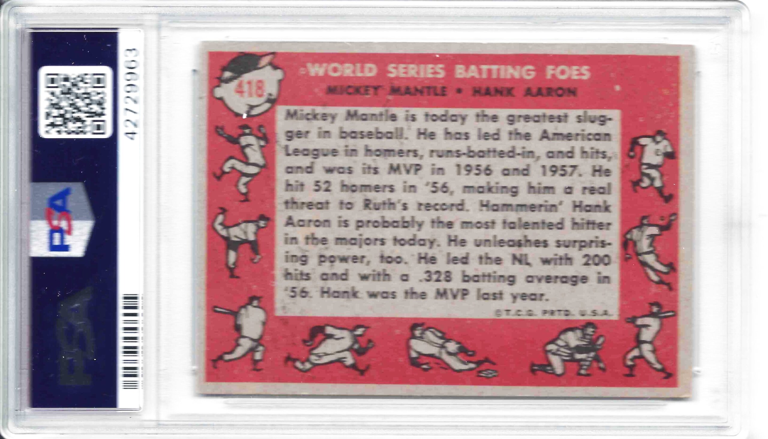1958 TOPPS #418 M. MANTLE/H. AARON W.S. BATTING FOES PSA VG-EX 4