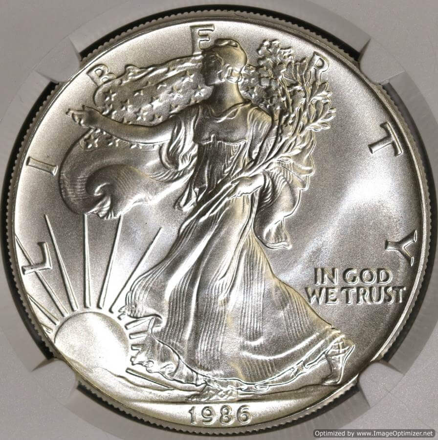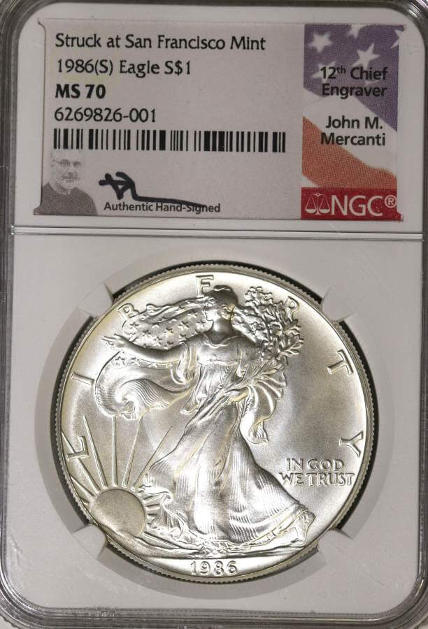 1986 (S) $1 EAGLE MS 70 NGC MERCANTI LABEL