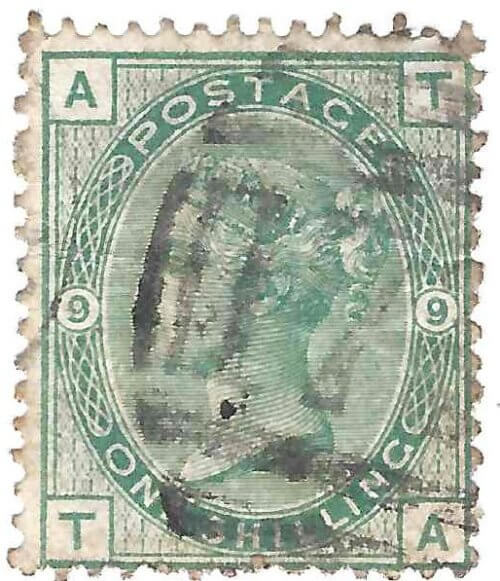 GREAT BRITIAN 1873-80 1 Shilling Pale Green (SCOTT 64a) Plate 9
