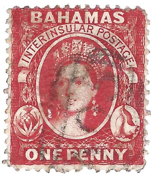BAHAMAS 1862 1p Carmine Lake (SCOTT 8a) 13 Perf.