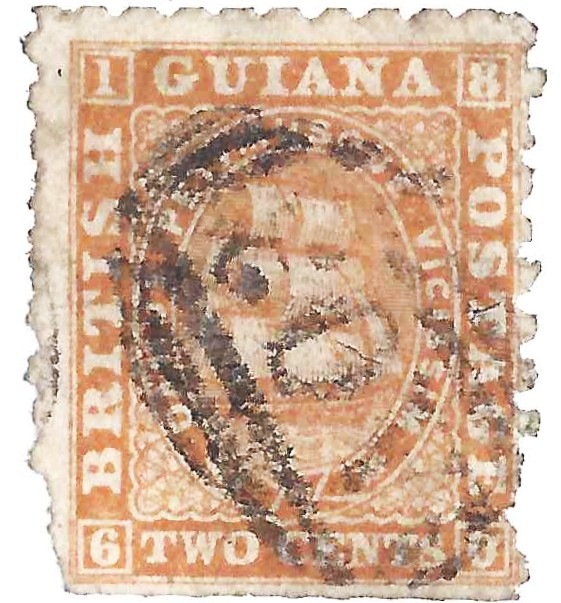 BRITISH GUIANA 1862-65 2C Orange (SCOTT 25) quantity