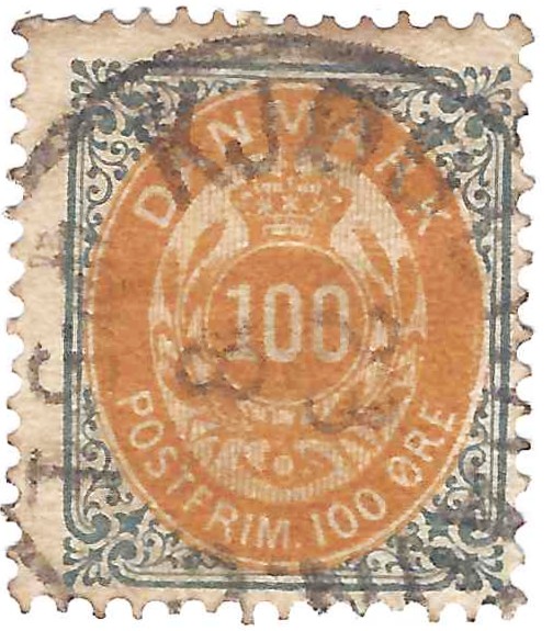 DENMARK 1877 100 ORE Grey & Orange (SCOTT 34)