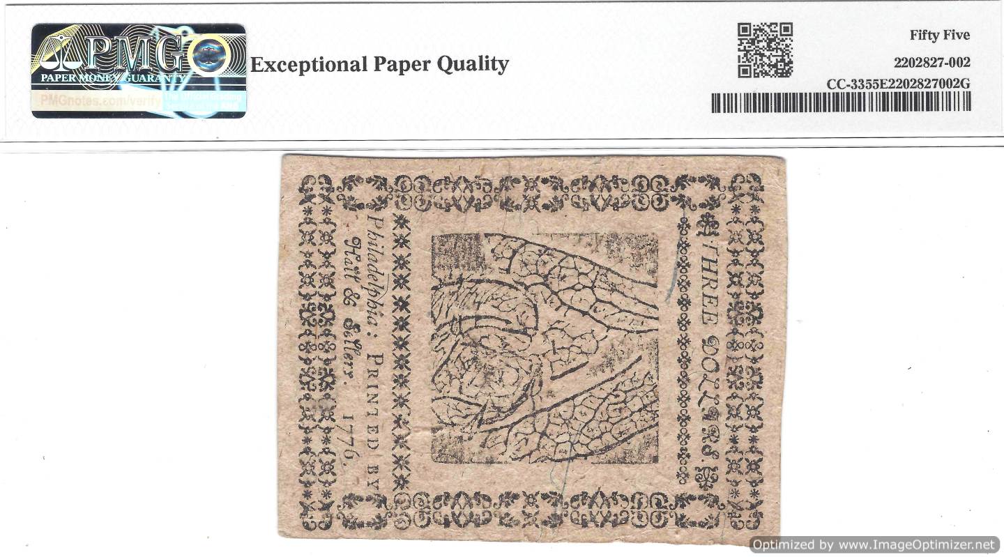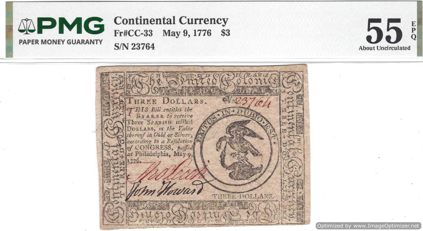 Fr.#CC-33 MAY,9, 1776 $3 PMG55 EPQ quantity