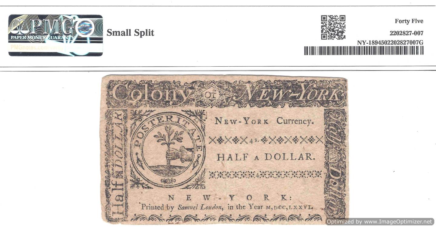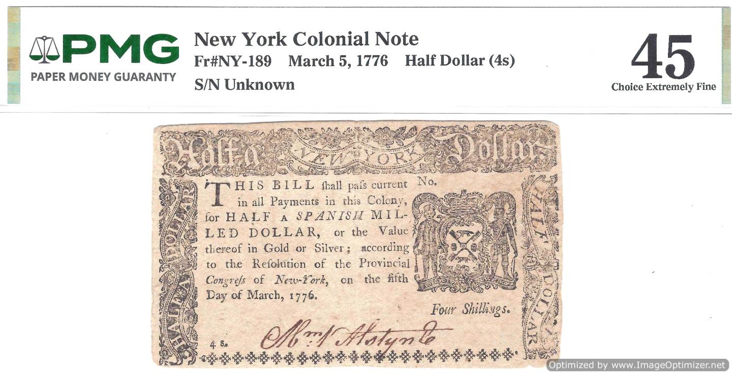 Fr#NY-189 MARCH 5,1776 Half Dollar(4s) PMG45 quantity