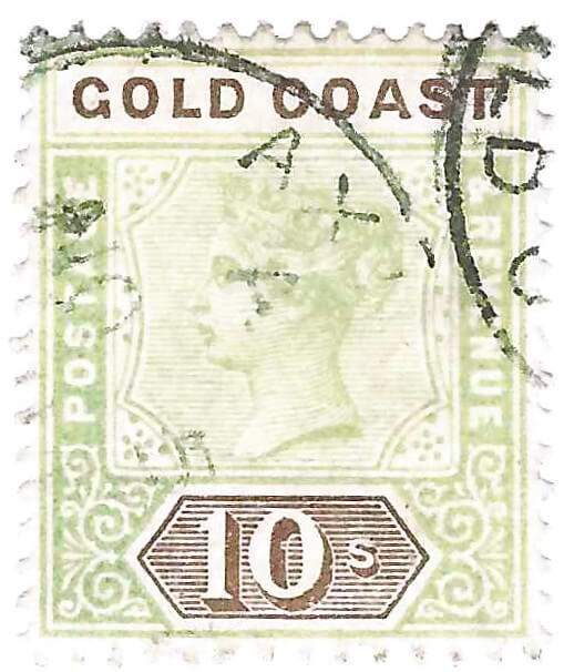 GOLD COAST 1898-1902 10 Shilling Green & Brown(SCOTT 35)