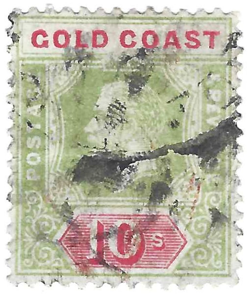GOLD COAST 1916 10 Shilling Green & Red (SCOTT 79)