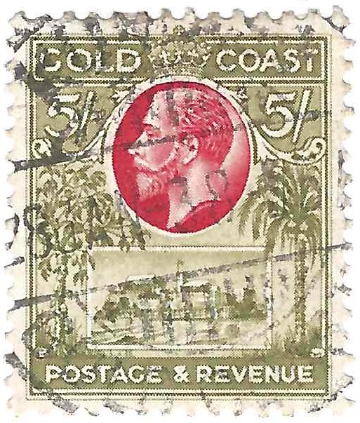 GOLD COAST 1928 5 Shilling Olive Green & Carmine (SCOTT 107)