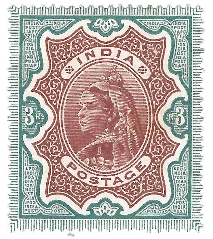 INDIA 1895 3 Rupee Green & Brown (SCOTT 51) Unhinged quantity