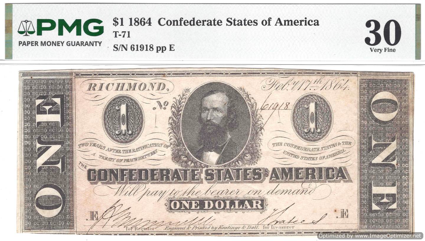 T-71 $1 1864 CONFEDERATE NOTE PMG30 quantity